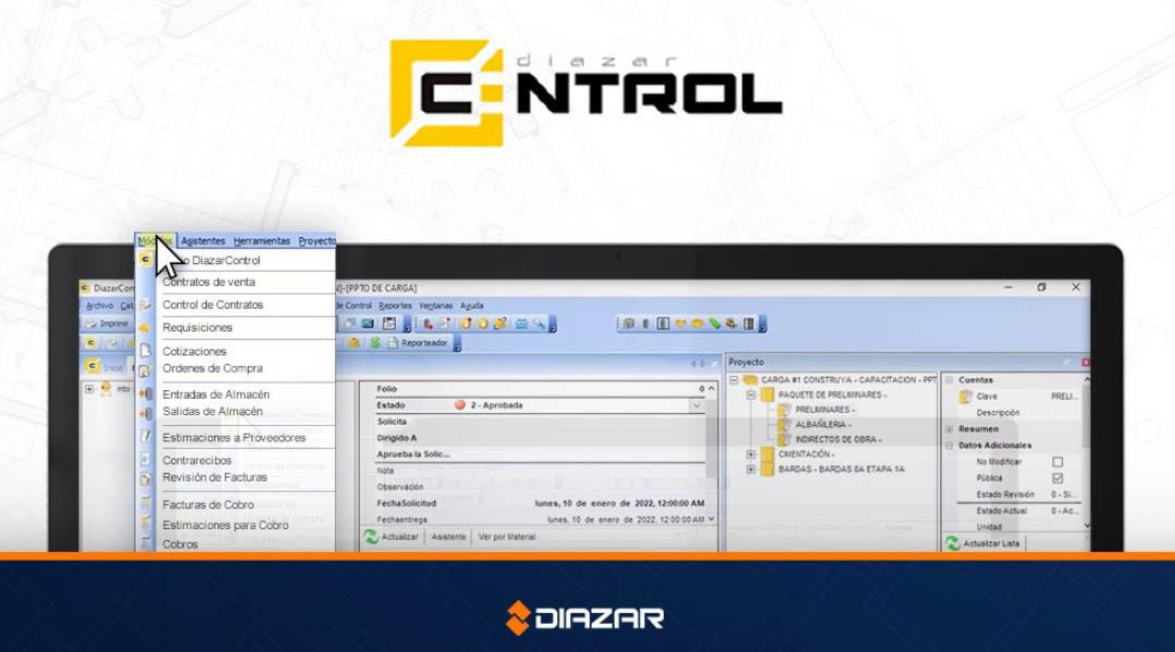 DiazarControl® es un sistema especializado en la gestión de proyectos de construcción, diseñado para integrar de manera eficiente los procesos de obra y administración de las empresas del sector. Este sistema se enfoca en cuatro pilares fundamentales: